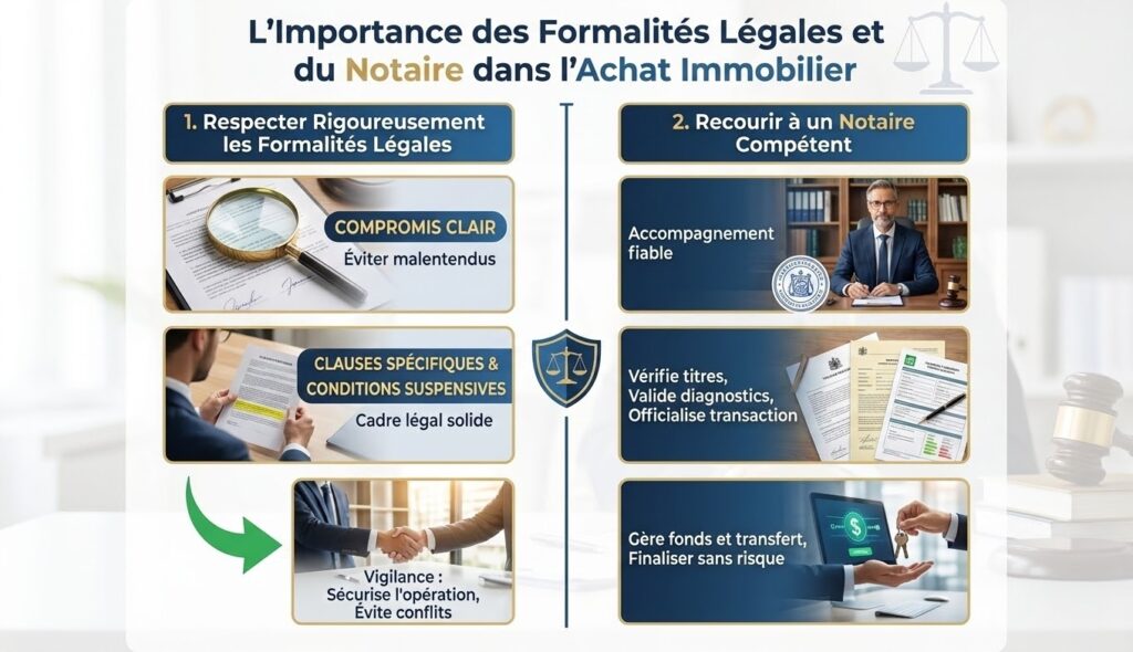 Respecter rigoureusement les formalités légales protège contre les litiges futurs. En effet, signer un compromis confortable et clair permet d’éviter des malentendus entre vendeur et acheteur. Par ailleurs, bien lire les clauses spécifiques et conditions suspensives assure un cadre légal solide. Ainsi, cette vigilance évite des conflits et sécurise l’opération immobilière.