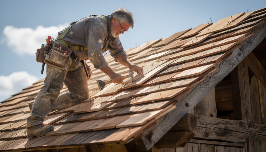 Le coût final d’une toiture en tavaillon dépend fortement de la main-d’œuvre spécialisée. Le tavillonneur maîtrise la pose à simple ou double recouvrement, ce qui assure l’étanchéité et maximise la durabilité de la couverture. Le recours à un poseur qualifié est indispensable car une erreur réduit l’efficacité du toit et accroît les risques de dégradation.